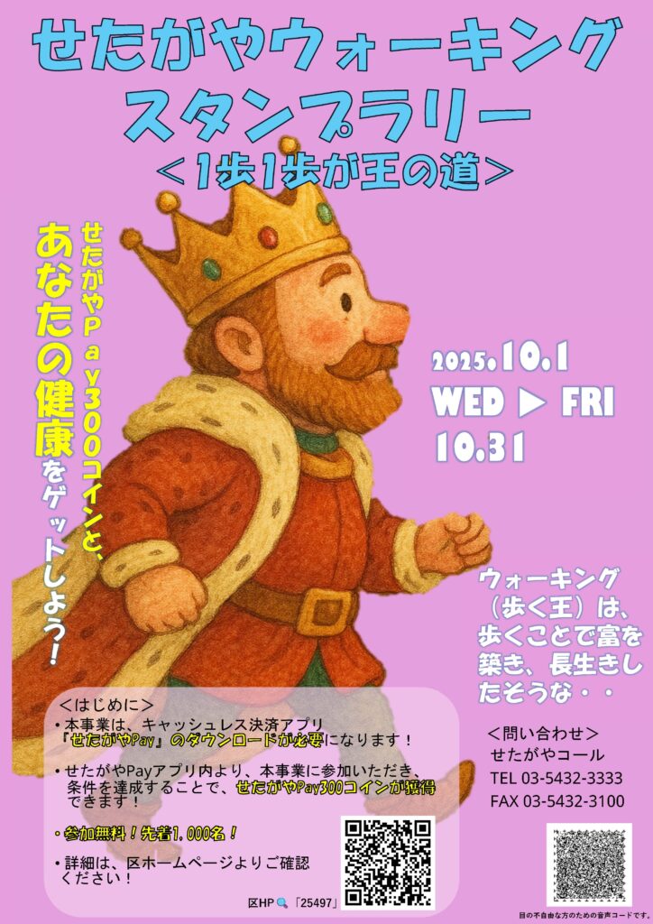 世田谷区が開催する運動習慣促進イベント「せたがやウォーキング スタンプラリー<1歩1歩が王の道>」が10月1日よりスタートします!